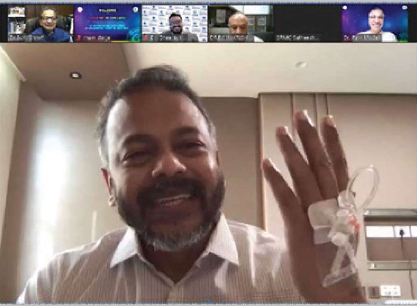 Fig. 2. Hospital CEO afflicted with COVID-19 addressing the conference from the hospital bed.