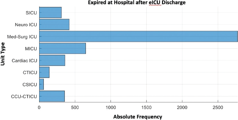 For patients who were discharged alive from ICU but later died in the hospital, the distribution by unit type shows in Figure 3.