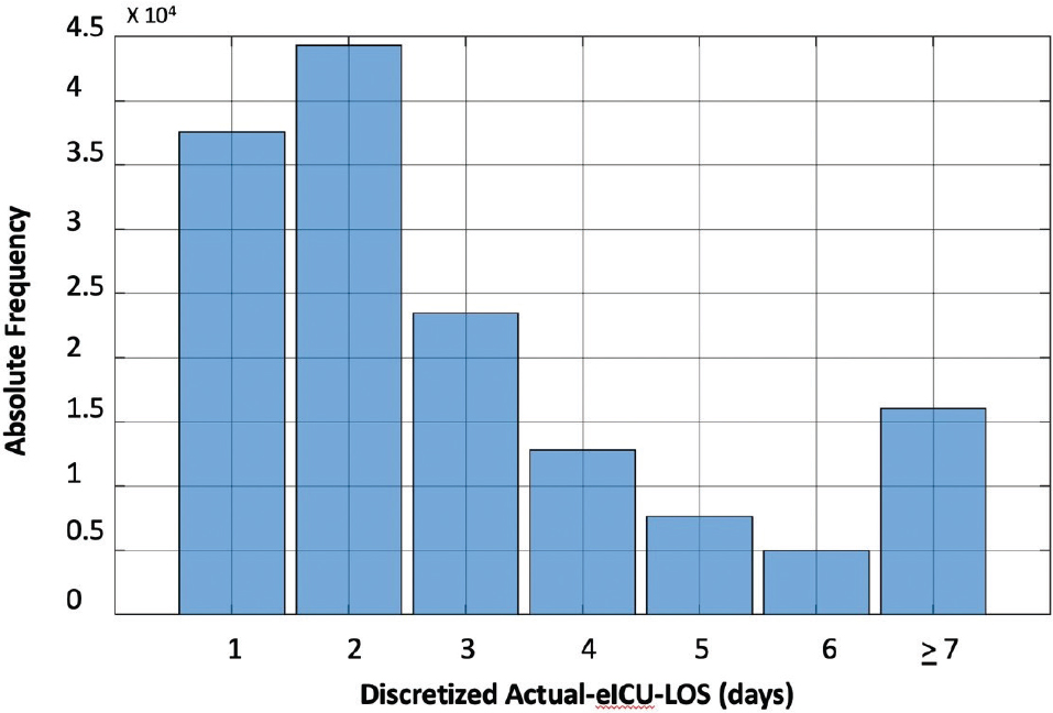 Fig. 10 Distribution of length of stay in the number of days after discretized. eICU: electronic Intensive Care Unit.