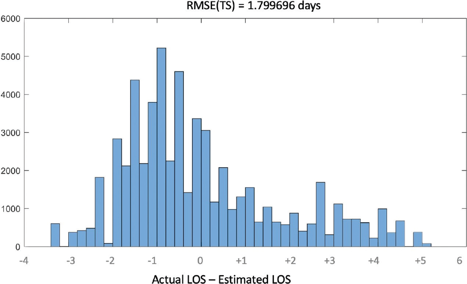 Fig. 14 Regression tree error for prediction windows of 6 days into the future. LOS: length of stay; RMSE: root mean square error. TS: test set.