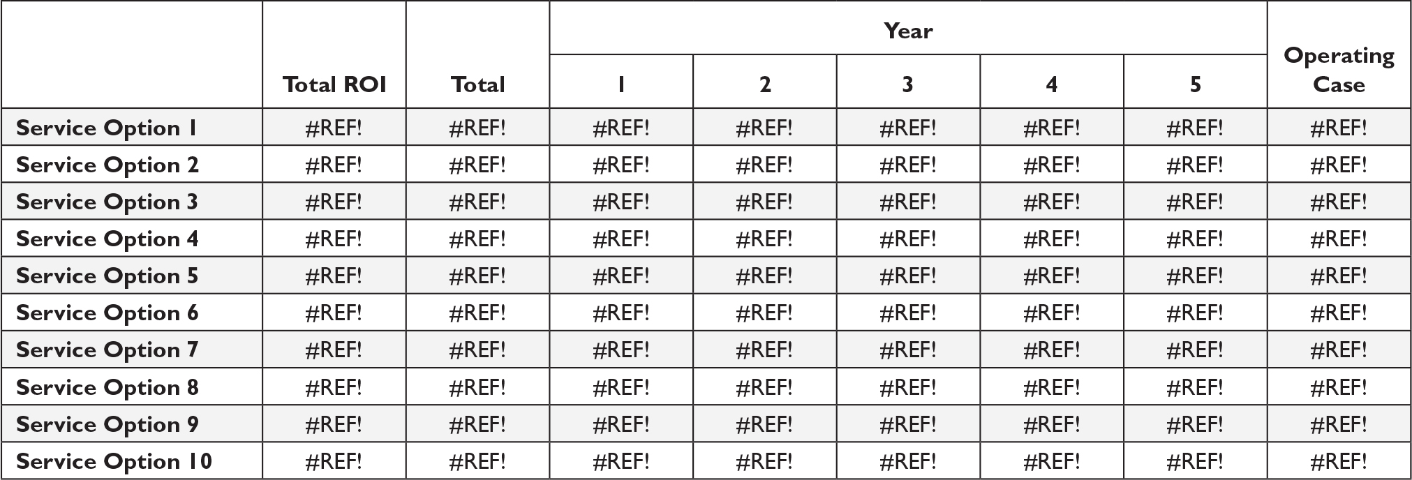 USER must create 1 new sheet per service option modeled by the ‘Template’ sheet