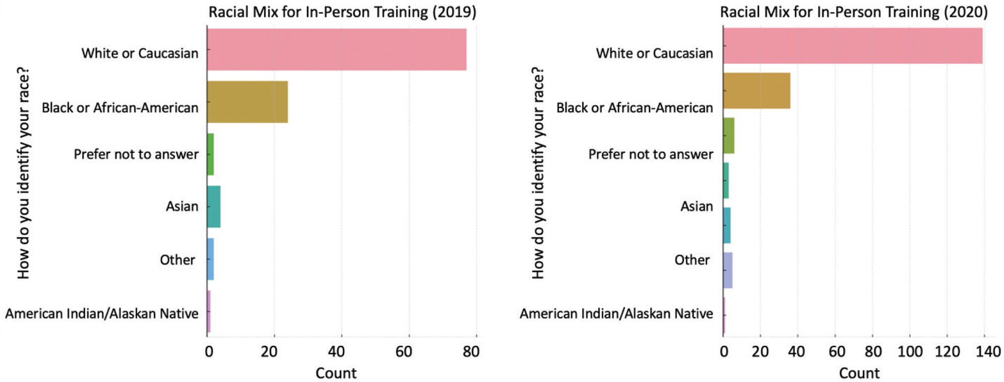 Fig. 3. Comparison of racial mix in-person vs. online training.