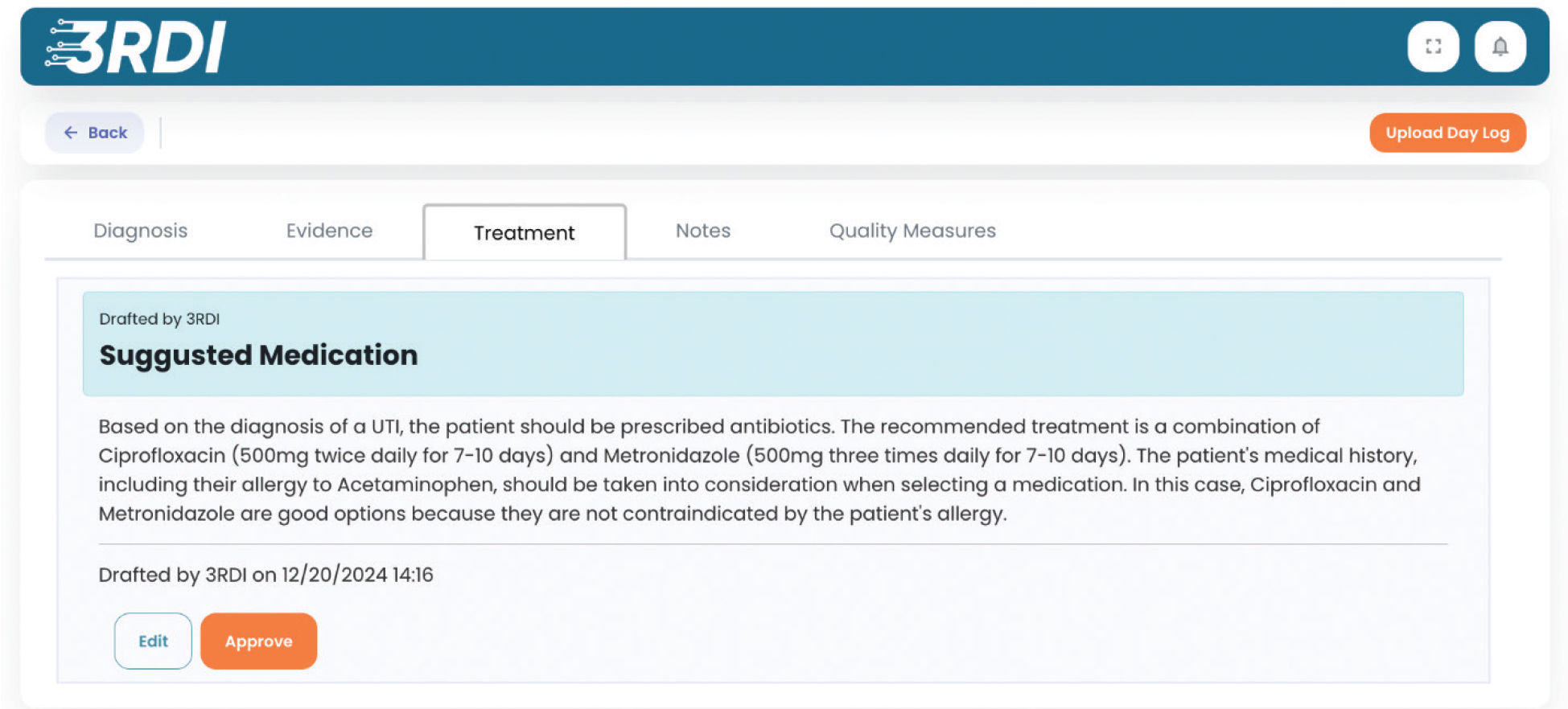 Methods: We propose automatic photographic apparatus (3RDI), a conceptual framework for an AI-driven CDSS for UTI management, utilizing the novel DETNQ (Diagnosis, Evidence, Treatment Plan, Notes, Quality) structure to organize clinical outputs. This framework envisions a system that would process comprehensive patient data, including medical history, symptoms, laboratory results, and medication records. 3RDI’s design incorporates a day-wise iterative process for continuous feedback, allowing clinicians to refine the system’s recommendations and establish a collaborative human-AI decision-making environment.